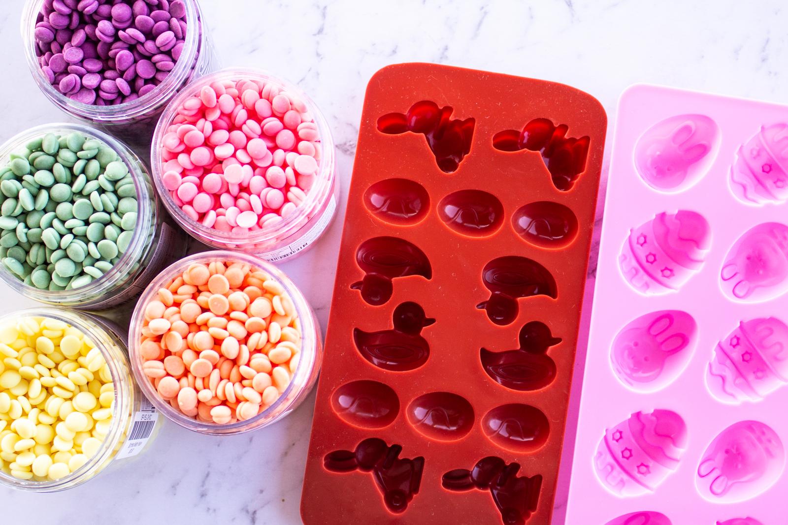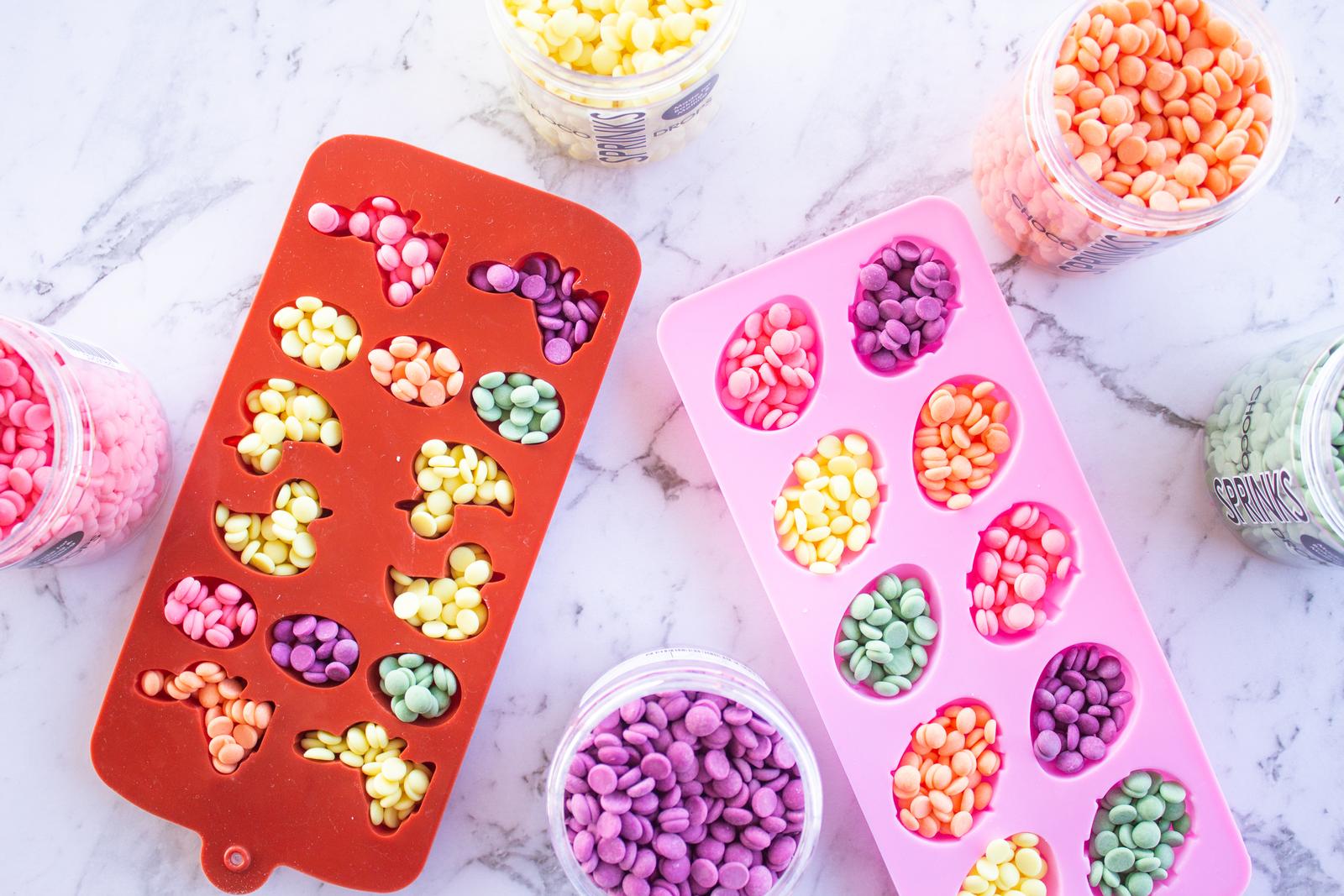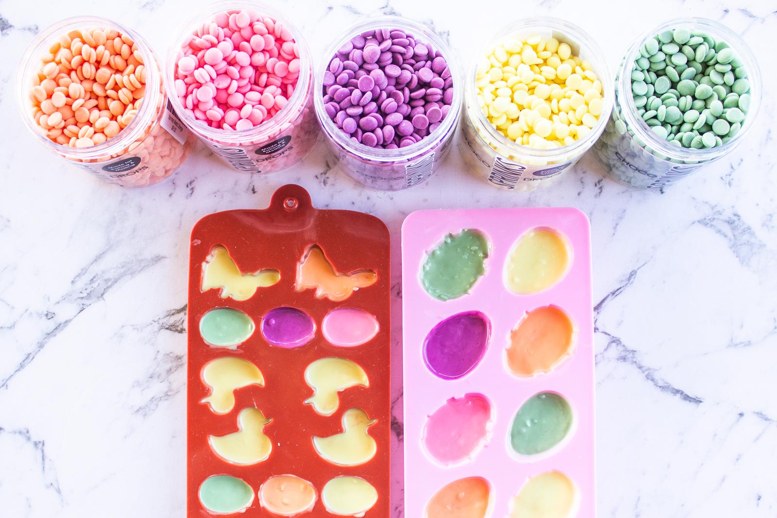 Once melted, remove from heat and let cool in the fridge until solid. Remove from moulds and use to decorate your Easter treats!