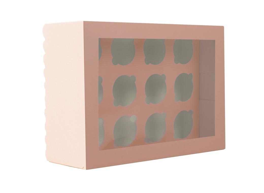 - Scalloped Tall 12-Hole Cupcake Box – Pastel Pink