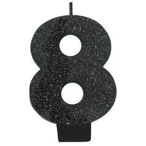 Black Glitter Candle - Number 8 quantity