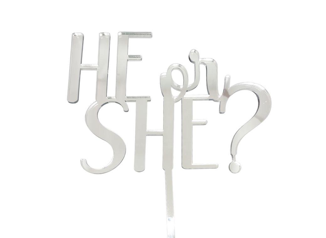 He or She Cake Topper – Silver