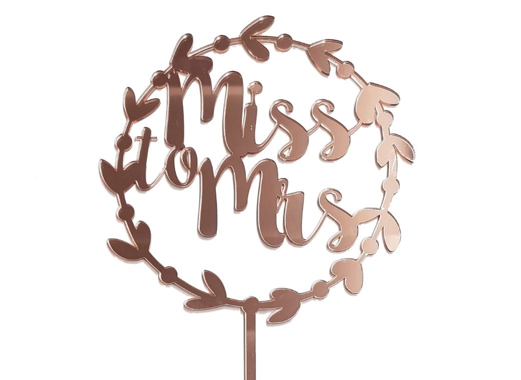 - Miss to Mrs Wreath Cake Topper – Rose Gold Mirror