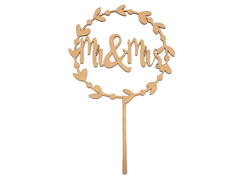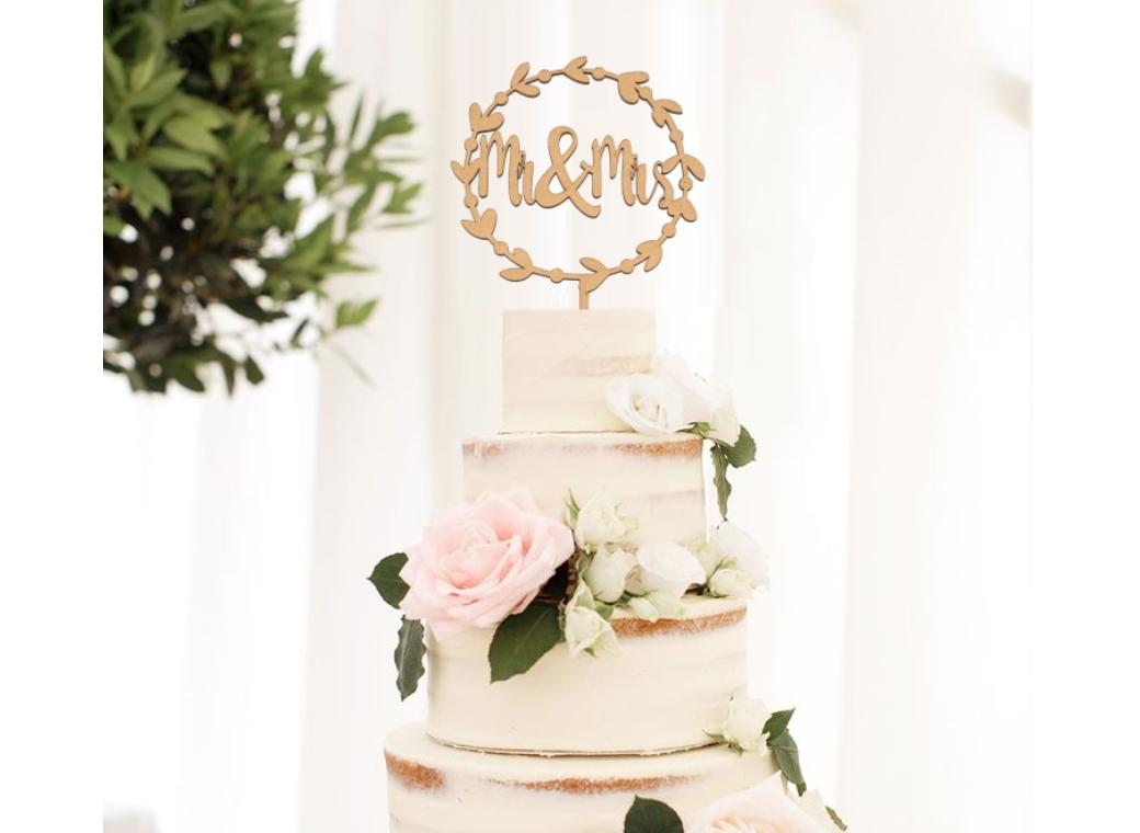 - Mr & Mrs Wreath Cake Topper – Wooden
