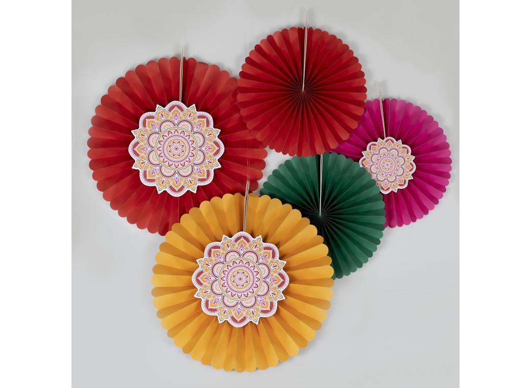 Diwali Paper Fans 5pk quantity