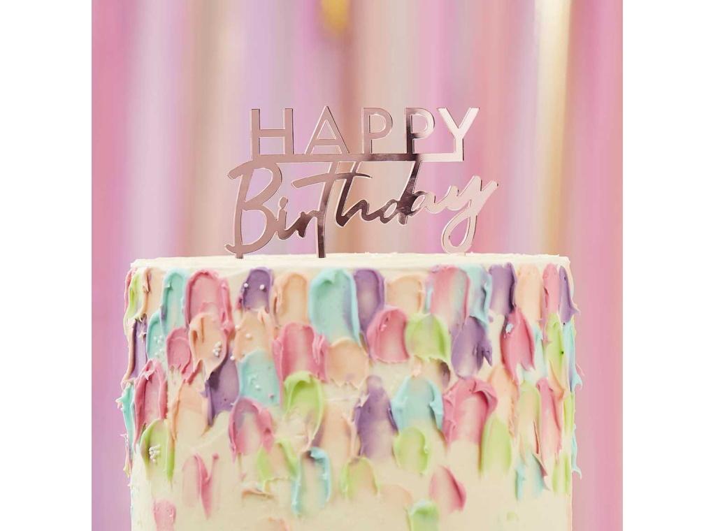 Happy Birthday Rose Gold Cake Topper