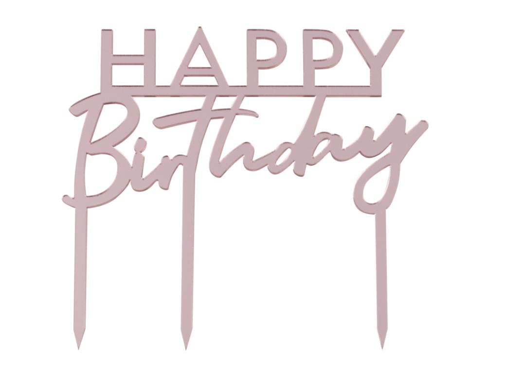 - Happy Birthday Rose Gold Cake Topper