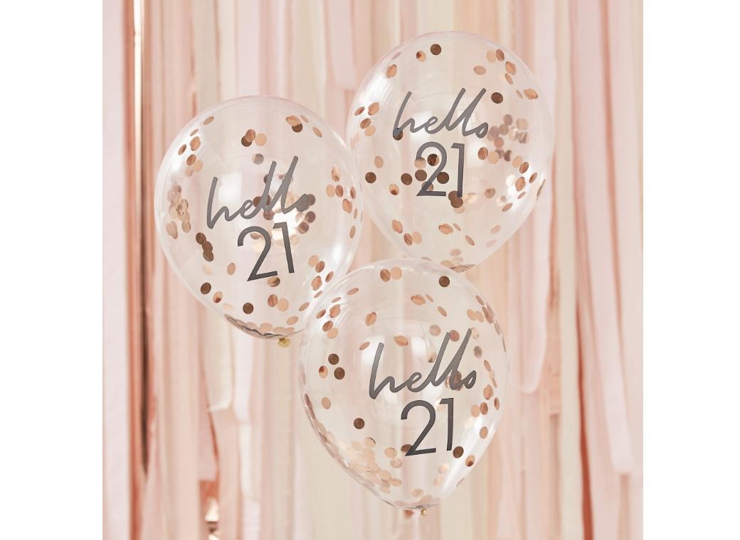 - Hello 21 Rose Gold Confetti Balloons 5pk