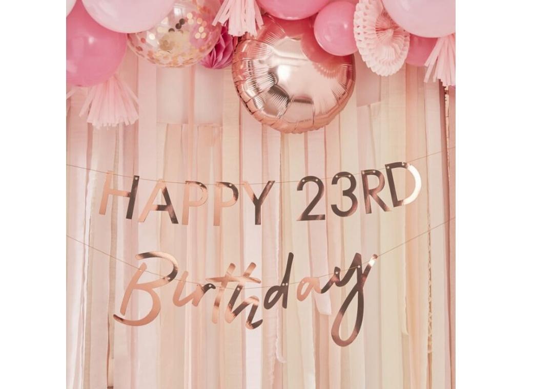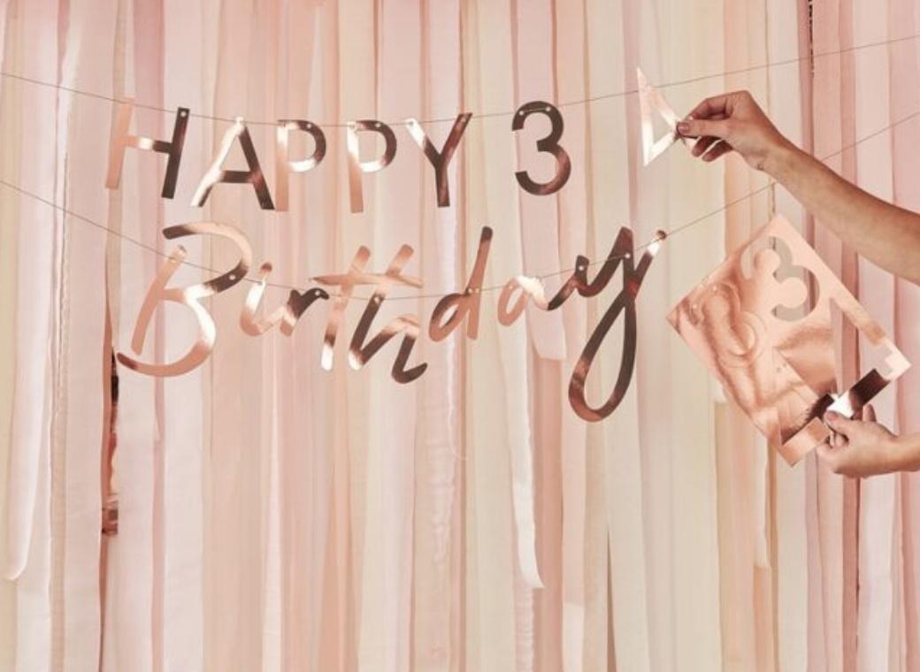 Customisable Rose Gold Happy Birthday Banner