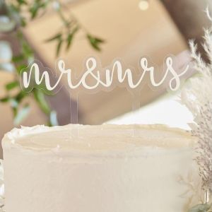 White Script Mr & Mrs Cake Topper