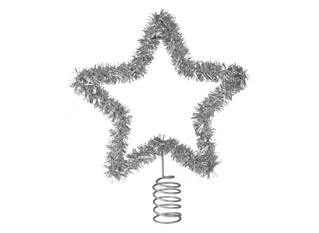 - Merry & Bright Silver Tinsel Christmas Tree Star Topper
