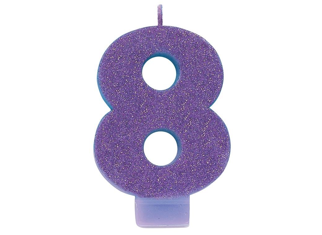 Purple Glitter Candle – Number 8