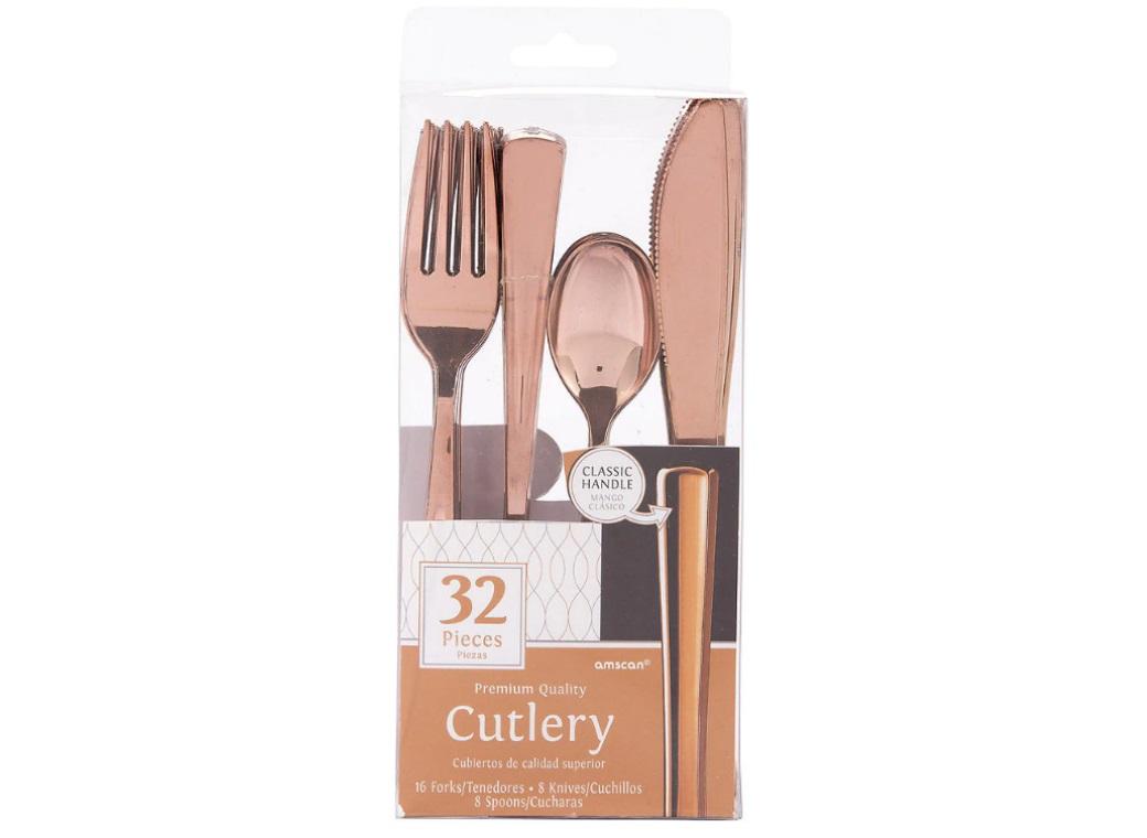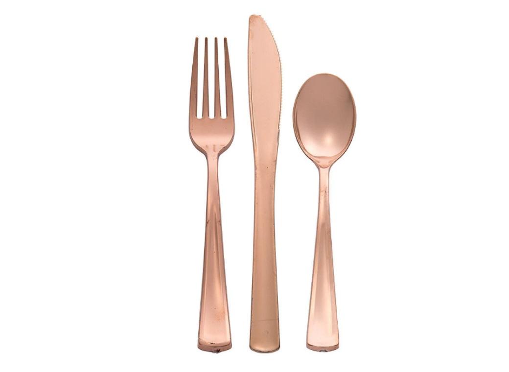 - Rose Gold Metallic Plastic Cutlery – 32pk