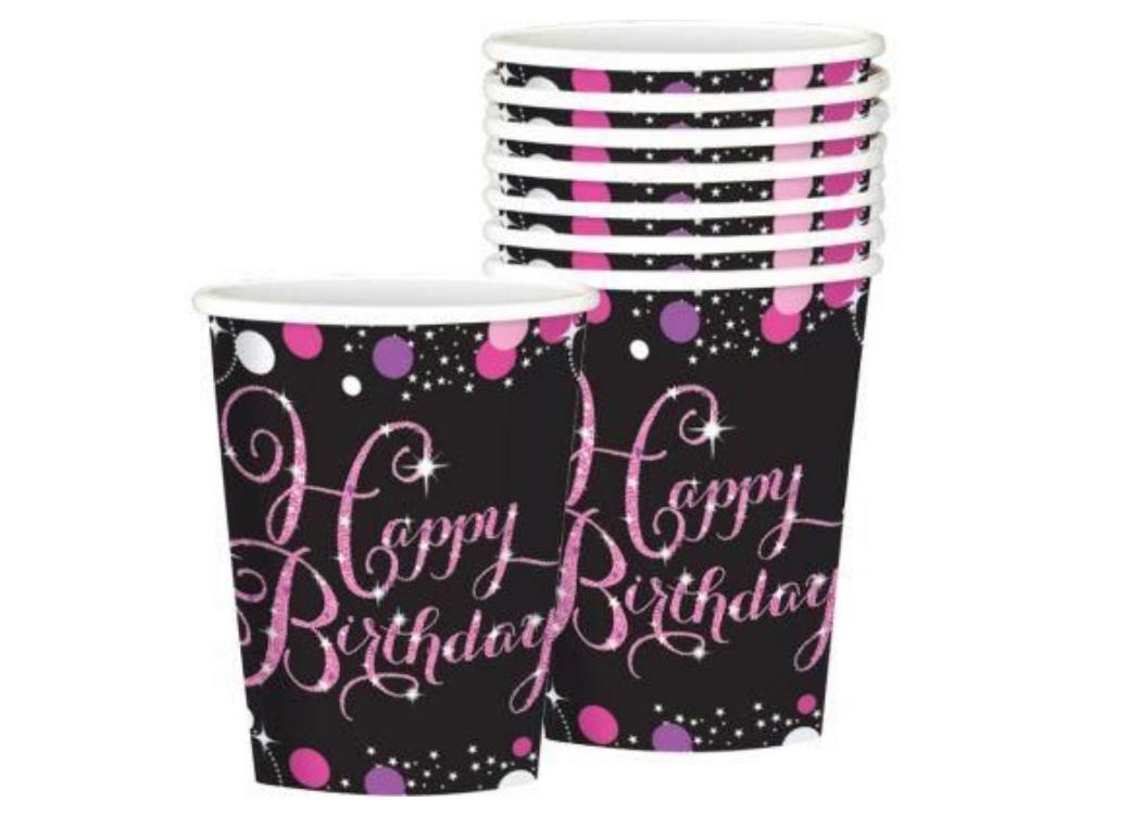 - Sparkling Pink Happy Birthday Cups 8pk